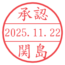 オプションの「電子透かし」をチェックし[生成]すると、見た目には分からないように、UNIXタイムスタンプを識別情報としてPNG形式の日付印に埋め込みます。 日付スタンプメーカーの使い方「部署」「名前」は最大8文字まで入力が可能です。「スタンプの色」を選択し、[生成]ボタン押下で印影画像が更新され、背景を透明に設定したPNG形式とPDF形式の印影画像がリンクからダウンロードできます。 オプションの「電子透かし」は、その性格上日付印ととても相性の良い付加サービスです。 別ページの「タイムスタンプと電子透かし」でも詳しく解説しますが、このオプションを追加することで、日付印が生成された日時に確かにその印が存在していることが証明されます。 ![]() 関島さんの電子印鑑が作れます。社内でのデータ書類閲覧確認用など、認印的な使い方のできる電子印鑑が作れます。 ![]() 古代文字で落款印が作れます。「落款スタンプメーカー」で作品を引き立たせる落款印が作れます。