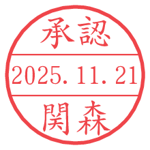 オプションの「電子透かし」をチェックし[生成]すると、見た目には分からないように、UNIXタイムスタンプを識別情報としてPNG形式の日付印に埋め込みます。 日付スタンプメーカーの使い方「部署」「名前」は最大8文字まで入力が可能です。「スタンプの色」を選択し、[生成]ボタン押下で印影画像が更新され、背景を透明に設定したPNG形式とPDF形式の印影画像がリンクからダウンロードできます。 オプションの「電子透かし」は、その性格上日付印ととても相性の良い付加サービスです。 別ページの「タイムスタンプと電子透かし」でも詳しく解説しますが、このオプションを追加することで、日付印が生成された日時に確かにその印が存在していることが証明されます。 ![]() 関森さんの電子印鑑が作れます。社内でのデータ書類閲覧確認用など、認印的な使い方のできる電子印鑑が作れます。 ![]() 古代文字で落款印が作れます。「落款スタンプメーカー」で作品を引き立たせる落款印が作れます。
