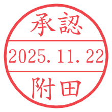 オプションの「電子透かし」をチェックし[生成]すると、見た目には分からないように、UNIXタイムスタンプを識別情報としてPNG形式の日付印に埋め込みます。 日付スタンプメーカーの使い方「部署」「名前」は最大8文字まで入力が可能です。「スタンプの色」を選択し、[生成]ボタン押下で印影画像が更新され、背景を透明に設定したPNG形式とPDF形式の印影画像がリンクからダウンロードできます。 オプションの「電子透かし」は、その性格上日付印ととても相性の良い付加サービスです。 別ページの「タイムスタンプと電子透かし」でも詳しく解説しますが、このオプションを追加することで、日付印が生成された日時に確かにその印が存在していることが証明されます。 ![]() 附田さんの電子印鑑が作れます。社内でのデータ書類閲覧確認用など、認印的な使い方のできる電子印鑑が作れます。 ![]() 古代文字で落款印が作れます。「落款スタンプメーカー」で作品を引き立たせる落款印が作れます。