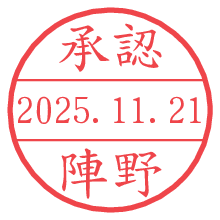 オプションの「電子透かし」をチェックし[生成]すると、見た目には分からないように、UNIXタイムスタンプを識別情報としてPNG形式の日付印に埋め込みます。 日付スタンプメーカーの使い方「部署」「名前」は最大8文字まで入力が可能です。「スタンプの色」を選択し、[生成]ボタン押下で印影画像が更新され、背景を透明に設定したPNG形式とPDF形式の印影画像がリンクからダウンロードできます。 オプションの「電子透かし」は、その性格上日付印ととても相性の良い付加サービスです。 別ページの「タイムスタンプと電子透かし」でも詳しく解説しますが、このオプションを追加することで、日付印が生成された日時に確かにその印が存在していることが証明されます。 ![]() 陣野さんの電子印鑑が作れます。社内でのデータ書類閲覧確認用など、認印的な使い方のできる電子印鑑が作れます。 ![]() 古代文字で落款印が作れます。「落款スタンプメーカー」で作品を引き立たせる落款印が作れます。