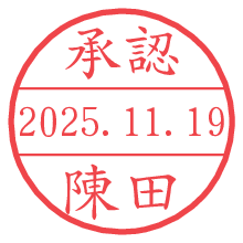 オプションの「電子透かし」をチェックし[生成]すると、見た目には分からないように、UNIXタイムスタンプを識別情報としてPNG形式の日付印に埋め込みます。 日付スタンプメーカーの使い方「部署」「名前」は最大8文字まで入力が可能です。「スタンプの色」を選択し、[生成]ボタン押下で印影画像が更新され、背景を透明に設定したPNG形式とPDF形式の印影画像がリンクからダウンロードできます。 オプションの「電子透かし」は、その性格上日付印ととても相性の良い付加サービスです。 別ページの「タイムスタンプと電子透かし」でも詳しく解説しますが、このオプションを追加することで、日付印が生成された日時に確かにその印が存在していることが証明されます。 ![]() 陳田さんの電子印鑑が作れます。社内でのデータ書類閲覧確認用など、認印的な使い方のできる電子印鑑が作れます。 ![]() 古代文字で落款印が作れます。「落款スタンプメーカー」で作品を引き立たせる落款印が作れます。