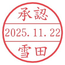 オプションの「電子透かし」をチェックし[生成]すると、見た目には分からないように、UNIXタイムスタンプを識別情報としてPNG形式の日付印に埋め込みます。 日付スタンプメーカーの使い方「部署」「名前」は最大8文字まで入力が可能です。「スタンプの色」を選択し、[生成]ボタン押下で印影画像が更新され、背景を透明に設定したPNG形式とPDF形式の印影画像がリンクからダウンロードできます。 オプションの「電子透かし」は、その性格上日付印ととても相性の良い付加サービスです。 別ページの「タイムスタンプと電子透かし」でも詳しく解説しますが、このオプションを追加することで、日付印が生成された日時に確かにその印が存在していることが証明されます。 ![]() 雪田さんの電子印鑑が作れます。社内でのデータ書類閲覧確認用など、認印的な使い方のできる電子印鑑が作れます。 ![]() 古代文字で落款印が作れます。「落款スタンプメーカー」で作品を引き立たせる落款印が作れます。