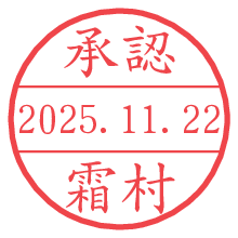 オプションの「電子透かし」をチェックし[生成]すると、見た目には分からないように、UNIXタイムスタンプを識別情報としてPNG形式の日付印に埋め込みます。 日付スタンプメーカーの使い方「部署」「名前」は最大8文字まで入力が可能です。「スタンプの色」を選択し、[生成]ボタン押下で印影画像が更新され、背景を透明に設定したPNG形式とPDF形式の印影画像がリンクからダウンロードできます。 オプションの「電子透かし」は、その性格上日付印ととても相性の良い付加サービスです。 別ページの「タイムスタンプと電子透かし」でも詳しく解説しますが、このオプションを追加することで、日付印が生成された日時に確かにその印が存在していることが証明されます。 ![]() 霜村さんの電子印鑑が作れます。社内でのデータ書類閲覧確認用など、認印的な使い方のできる電子印鑑が作れます。 ![]() 古代文字で落款印が作れます。「落款スタンプメーカー」で作品を引き立たせる落款印が作れます。