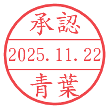 オプションの「電子透かし」をチェックし[生成]すると、見た目には分からないように、UNIXタイムスタンプを識別情報としてPNG形式の日付印に埋め込みます。 日付スタンプメーカーの使い方「部署」「名前」は最大8文字まで入力が可能です。「スタンプの色」を選択し、[生成]ボタン押下で印影画像が更新され、背景を透明に設定したPNG形式とPDF形式の印影画像がリンクからダウンロードできます。 オプションの「電子透かし」は、その性格上日付印ととても相性の良い付加サービスです。 別ページの「タイムスタンプと電子透かし」でも詳しく解説しますが、このオプションを追加することで、日付印が生成された日時に確かにその印が存在していることが証明されます。 ![]() 青葉さんの電子印鑑が作れます。社内でのデータ書類閲覧確認用など、認印的な使い方のできる電子印鑑が作れます。 ![]() 古代文字で落款印が作れます。「落款スタンプメーカー」で作品を引き立たせる落款印が作れます。