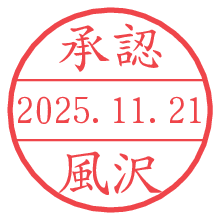 オプションの「電子透かし」をチェックし[生成]すると、見た目には分からないように、UNIXタイムスタンプを識別情報としてPNG形式の日付印に埋め込みます。 日付スタンプメーカーの使い方「部署」「名前」は最大8文字まで入力が可能です。「スタンプの色」を選択し、[生成]ボタン押下で印影画像が更新され、背景を透明に設定したPNG形式とPDF形式の印影画像がリンクからダウンロードできます。 オプションの「電子透かし」は、その性格上日付印ととても相性の良い付加サービスです。 別ページの「タイムスタンプと電子透かし」でも詳しく解説しますが、このオプションを追加することで、日付印が生成された日時に確かにその印が存在していることが証明されます。 ![]() 風沢さんの電子印鑑が作れます。社内でのデータ書類閲覧確認用など、認印的な使い方のできる電子印鑑が作れます。 ![]() 古代文字で落款印が作れます。「落款スタンプメーカー」で作品を引き立たせる落款印が作れます。