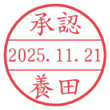オプションの「電子透かし」をチェックし[生成]すると、見た目には分からないように、UNIXタイムスタンプを識別情報としてPNG形式の日付印に埋め込みます。 日付スタンプメーカーの使い方「部署」「名前」は最大8文字まで入力が可能です。「スタンプの色」を選択し、[生成]ボタン押下で印影画像が更新され、背景を透明に設定したPNG形式とPDF形式の印影画像がリンクからダウンロードできます。 オプションの「電子透かし」は、その性格上日付印ととても相性の良い付加サービスです。 別ページの「タイムスタンプと電子透かし」でも詳しく解説しますが、このオプションを追加することで、日付印が生成された日時に確かにその印が存在していることが証明されます。 ![]() 養田さんの電子印鑑が作れます。社内でのデータ書類閲覧確認用など、認印的な使い方のできる電子印鑑が作れます。 ![]() 古代文字で落款印が作れます。「落款スタンプメーカー」で作品を引き立たせる落款印が作れます。