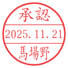 オプションの「電子透かし」をチェックし[生成]すると、見た目には分からないように、UNIXタイムスタンプを識別情報としてPNG形式の日付印に埋め込みます。 日付スタンプメーカーの使い方「部署」「名前」は最大8文字まで入力が可能です。「スタンプの色」を選択し、[生成]ボタン押下で印影画像が更新され、背景を透明に設定したPNG形式とPDF形式の印影画像がリンクからダウンロードできます。 オプションの「電子透かし」は、その性格上日付印ととても相性の良い付加サービスです。 別ページの「タイムスタンプと電子透かし」でも詳しく解説しますが、このオプションを追加することで、日付印が生成された日時に確かにその印が存在していることが証明されます。 ![]() 馬場野さんの電子印鑑が作れます。社内でのデータ書類閲覧確認用など、認印的な使い方のできる電子印鑑が作れます。 ![]() 古代文字で落款印が作れます。「落款スタンプメーカー」で作品を引き立たせる落款印が作れます。