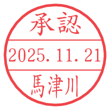 オプションの「電子透かし」をチェックし[生成]すると、見た目には分からないように、UNIXタイムスタンプを識別情報としてPNG形式の日付印に埋め込みます。 日付スタンプメーカーの使い方「部署」「名前」は最大8文字まで入力が可能です。「スタンプの色」を選択し、[生成]ボタン押下で印影画像が更新され、背景を透明に設定したPNG形式とPDF形式の印影画像がリンクからダウンロードできます。 オプションの「電子透かし」は、その性格上日付印ととても相性の良い付加サービスです。 別ページの「タイムスタンプと電子透かし」でも詳しく解説しますが、このオプションを追加することで、日付印が生成された日時に確かにその印が存在していることが証明されます。 ![]() 馬津川さんの電子印鑑が作れます。社内でのデータ書類閲覧確認用など、認印的な使い方のできる電子印鑑が作れます。 ![]() 古代文字で落款印が作れます。「落款スタンプメーカー」で作品を引き立たせる落款印が作れます。
