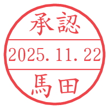 オプションの「電子透かし」をチェックし[生成]すると、見た目には分からないように、UNIXタイムスタンプを識別情報としてPNG形式の日付印に埋め込みます。 日付スタンプメーカーの使い方「部署」「名前」は最大8文字まで入力が可能です。「スタンプの色」を選択し、[生成]ボタン押下で印影画像が更新され、背景を透明に設定したPNG形式とPDF形式の印影画像がリンクからダウンロードできます。 オプションの「電子透かし」は、その性格上日付印ととても相性の良い付加サービスです。 別ページの「タイムスタンプと電子透かし」でも詳しく解説しますが、このオプションを追加することで、日付印が生成された日時に確かにその印が存在していることが証明されます。 ![]() 馬田さんの電子印鑑が作れます。社内でのデータ書類閲覧確認用など、認印的な使い方のできる電子印鑑が作れます。 ![]() 古代文字で落款印が作れます。「落款スタンプメーカー」で作品を引き立たせる落款印が作れます。