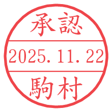 オプションの「電子透かし」をチェックし[生成]すると、見た目には分からないように、UNIXタイムスタンプを識別情報としてPNG形式の日付印に埋め込みます。 日付スタンプメーカーの使い方「部署」「名前」は最大8文字まで入力が可能です。「スタンプの色」を選択し、[生成]ボタン押下で印影画像が更新され、背景を透明に設定したPNG形式とPDF形式の印影画像がリンクからダウンロードできます。 オプションの「電子透かし」は、その性格上日付印ととても相性の良い付加サービスです。 別ページの「タイムスタンプと電子透かし」でも詳しく解説しますが、このオプションを追加することで、日付印が生成された日時に確かにその印が存在していることが証明されます。 ![]() 駒村さんの電子印鑑が作れます。社内でのデータ書類閲覧確認用など、認印的な使い方のできる電子印鑑が作れます。 ![]() 古代文字で落款印が作れます。「落款スタンプメーカー」で作品を引き立たせる落款印が作れます。
