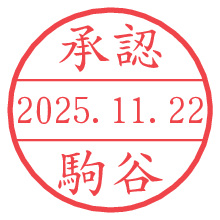 オプションの「電子透かし」をチェックし[生成]すると、見た目には分からないように、UNIXタイムスタンプを識別情報としてPNG形式の日付印に埋め込みます。 日付スタンプメーカーの使い方「部署」「名前」は最大8文字まで入力が可能です。「スタンプの色」を選択し、[生成]ボタン押下で印影画像が更新され、背景を透明に設定したPNG形式とPDF形式の印影画像がリンクからダウンロードできます。 オプションの「電子透かし」は、その性格上日付印ととても相性の良い付加サービスです。 別ページの「タイムスタンプと電子透かし」でも詳しく解説しますが、このオプションを追加することで、日付印が生成された日時に確かにその印が存在していることが証明されます。 ![]() 駒谷さんの電子印鑑が作れます。社内でのデータ書類閲覧確認用など、認印的な使い方のできる電子印鑑が作れます。 ![]() 古代文字で落款印が作れます。「落款スタンプメーカー」で作品を引き立たせる落款印が作れます。
