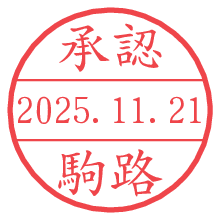 オプションの「電子透かし」をチェックし[生成]すると、見た目には分からないように、UNIXタイムスタンプを識別情報としてPNG形式の日付印に埋め込みます。 日付スタンプメーカーの使い方「部署」「名前」は最大8文字まで入力が可能です。「スタンプの色」を選択し、[生成]ボタン押下で印影画像が更新され、背景を透明に設定したPNG形式とPDF形式の印影画像がリンクからダウンロードできます。 オプションの「電子透かし」は、その性格上日付印ととても相性の良い付加サービスです。 別ページの「タイムスタンプと電子透かし」でも詳しく解説しますが、このオプションを追加することで、日付印が生成された日時に確かにその印が存在していることが証明されます。 ![]() 駒路さんの電子印鑑が作れます。社内でのデータ書類閲覧確認用など、認印的な使い方のできる電子印鑑が作れます。 ![]() 古代文字で落款印が作れます。「落款スタンプメーカー」で作品を引き立たせる落款印が作れます。