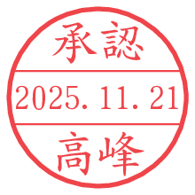 オプションの「電子透かし」をチェックし[生成]すると、見た目には分からないように、UNIXタイムスタンプを識別情報としてPNG形式の日付印に埋め込みます。 日付スタンプメーカーの使い方「部署」「名前」は最大8文字まで入力が可能です。「スタンプの色」を選択し、[生成]ボタン押下で印影画像が更新され、背景を透明に設定したPNG形式とPDF形式の印影画像がリンクからダウンロードできます。 オプションの「電子透かし」は、その性格上日付印ととても相性の良い付加サービスです。 別ページの「タイムスタンプと電子透かし」でも詳しく解説しますが、このオプションを追加することで、日付印が生成された日時に確かにその印が存在していることが証明されます。 ![]() 高峰さんの電子印鑑が作れます。社内でのデータ書類閲覧確認用など、認印的な使い方のできる電子印鑑が作れます。 ![]() 古代文字で落款印が作れます。「落款スタンプメーカー」で作品を引き立たせる落款印が作れます。