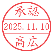 オプションの「電子透かし」をチェックし[生成]すると、見た目には分からないように、UNIXタイムスタンプを識別情報としてPNG形式の日付印に埋め込みます。 日付スタンプメーカーの使い方「部署」「名前」は最大8文字まで入力が可能です。「スタンプの色」を選択し、[生成]ボタン押下で印影画像が更新され、背景を透明に設定したPNG形式とPDF形式の印影画像がリンクからダウンロードできます。 オプションの「電子透かし」は、その性格上日付印ととても相性の良い付加サービスです。 別ページの「タイムスタンプと電子透かし」でも詳しく解説しますが、このオプションを追加することで、日付印が生成された日時に確かにその印が存在していることが証明されます。 ![]() 高広さんの電子印鑑が作れます。社内でのデータ書類閲覧確認用など、認印的な使い方のできる電子印鑑が作れます。 ![]() 古代文字で落款印が作れます。「落款スタンプメーカー」で作品を引き立たせる落款印が作れます。