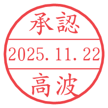 オプションの「電子透かし」をチェックし[生成]すると、見た目には分からないように、UNIXタイムスタンプを識別情報としてPNG形式の日付印に埋め込みます。 日付スタンプメーカーの使い方「部署」「名前」は最大8文字まで入力が可能です。「スタンプの色」を選択し、[生成]ボタン押下で印影画像が更新され、背景を透明に設定したPNG形式とPDF形式の印影画像がリンクからダウンロードできます。 オプションの「電子透かし」は、その性格上日付印ととても相性の良い付加サービスです。 別ページの「タイムスタンプと電子透かし」でも詳しく解説しますが、このオプションを追加することで、日付印が生成された日時に確かにその印が存在していることが証明されます。 ![]() 高波さんの電子印鑑が作れます。社内でのデータ書類閲覧確認用など、認印的な使い方のできる電子印鑑が作れます。 ![]() 古代文字で落款印が作れます。「落款スタンプメーカー」で作品を引き立たせる落款印が作れます。