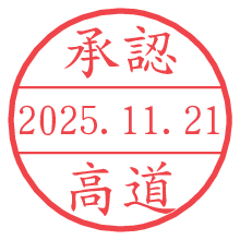 オプションの「電子透かし」をチェックし[生成]すると、見た目には分からないように、UNIXタイムスタンプを識別情報としてPNG形式の日付印に埋め込みます。 日付スタンプメーカーの使い方「部署」「名前」は最大8文字まで入力が可能です。「スタンプの色」を選択し、[生成]ボタン押下で印影画像が更新され、背景を透明に設定したPNG形式とPDF形式の印影画像がリンクからダウンロードできます。 オプションの「電子透かし」は、その性格上日付印ととても相性の良い付加サービスです。 別ページの「タイムスタンプと電子透かし」でも詳しく解説しますが、このオプションを追加することで、日付印が生成された日時に確かにその印が存在していることが証明されます。 ![]() 高道さんの電子印鑑が作れます。社内でのデータ書類閲覧確認用など、認印的な使い方のできる電子印鑑が作れます。 ![]() 古代文字で落款印が作れます。「落款スタンプメーカー」で作品を引き立たせる落款印が作れます。