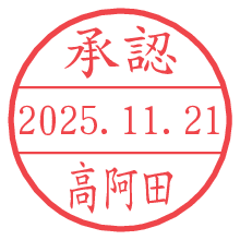 オプションの「電子透かし」をチェックし[生成]すると、見た目には分からないように、UNIXタイムスタンプを識別情報としてPNG形式の日付印に埋め込みます。 日付スタンプメーカーの使い方「部署」「名前」は最大8文字まで入力が可能です。「スタンプの色」を選択し、[生成]ボタン押下で印影画像が更新され、背景を透明に設定したPNG形式とPDF形式の印影画像がリンクからダウンロードできます。 オプションの「電子透かし」は、その性格上日付印ととても相性の良い付加サービスです。 別ページの「タイムスタンプと電子透かし」でも詳しく解説しますが、このオプションを追加することで、日付印が生成された日時に確かにその印が存在していることが証明されます。 ![]() 高阿田さんの電子印鑑が作れます。社内でのデータ書類閲覧確認用など、認印的な使い方のできる電子印鑑が作れます。 ![]() 古代文字で落款印が作れます。「落款スタンプメーカー」で作品を引き立たせる落款印が作れます。