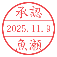 オプションの「電子透かし」をチェックし[生成]すると、見た目には分からないように、UNIXタイムスタンプを識別情報としてPNG形式の日付印に埋め込みます。 日付スタンプメーカーの使い方「部署」「名前」は最大8文字まで入力が可能です。「スタンプの色」を選択し、[生成]ボタン押下で印影画像が更新され、背景を透明に設定したPNG形式とPDF形式の印影画像がリンクからダウンロードできます。 オプションの「電子透かし」は、その性格上日付印ととても相性の良い付加サービスです。 別ページの「タイムスタンプと電子透かし」でも詳しく解説しますが、このオプションを追加することで、日付印が生成された日時に確かにその印が存在していることが証明されます。 ![]() 魚瀬さんの電子印鑑が作れます。社内でのデータ書類閲覧確認用など、認印的な使い方のできる電子印鑑が作れます。 ![]() 古代文字で落款印が作れます。「落款スタンプメーカー」で作品を引き立たせる落款印が作れます。