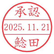 オプションの「電子透かし」をチェックし[生成]すると、見た目には分からないように、UNIXタイムスタンプを識別情報としてPNG形式の日付印に埋め込みます。 日付スタンプメーカーの使い方「部署」「名前」は最大8文字まで入力が可能です。「スタンプの色」を選択し、[生成]ボタン押下で印影画像が更新され、背景を透明に設定したPNG形式とPDF形式の印影画像がリンクからダウンロードできます。 オプションの「電子透かし」は、その性格上日付印ととても相性の良い付加サービスです。 別ページの「タイムスタンプと電子透かし」でも詳しく解説しますが、このオプションを追加することで、日付印が生成された日時に確かにその印が存在していることが証明されます。 ![]() 鯰田さんの電子印鑑が作れます。社内でのデータ書類閲覧確認用など、認印的な使い方のできる電子印鑑が作れます。 ![]() 古代文字で落款印が作れます。「落款スタンプメーカー」で作品を引き立たせる落款印が作れます。
