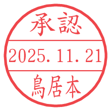 オプションの「電子透かし」をチェックし[生成]すると、見た目には分からないように、UNIXタイムスタンプを識別情報としてPNG形式の日付印に埋め込みます。 日付スタンプメーカーの使い方「部署」「名前」は最大8文字まで入力が可能です。「スタンプの色」を選択し、[生成]ボタン押下で印影画像が更新され、背景を透明に設定したPNG形式とPDF形式の印影画像がリンクからダウンロードできます。 オプションの「電子透かし」は、その性格上日付印ととても相性の良い付加サービスです。 別ページの「タイムスタンプと電子透かし」でも詳しく解説しますが、このオプションを追加することで、日付印が生成された日時に確かにその印が存在していることが証明されます。 ![]() 鳥居本さんの電子印鑑が作れます。社内でのデータ書類閲覧確認用など、認印的な使い方のできる電子印鑑が作れます。 ![]() 古代文字で落款印が作れます。「落款スタンプメーカー」で作品を引き立たせる落款印が作れます。