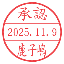 オプションの「電子透かし」をチェックし[生成]すると、見た目には分からないように、UNIXタイムスタンプを識別情報としてPNG形式の日付印に埋め込みます。 日付スタンプメーカーの使い方「部署」「名前」は最大8文字まで入力が可能です。「スタンプの色」を選択し、[生成]ボタン押下で印影画像が更新され、背景を透明に設定したPNG形式とPDF形式の印影画像がリンクからダウンロードできます。 オプションの「電子透かし」は、その性格上日付印ととても相性の良い付加サービスです。 別ページの「タイムスタンプと電子透かし」でも詳しく解説しますが、このオプションを追加することで、日付印が生成された日時に確かにその印が存在していることが証明されます。 ![]() 鹿子嶋さんの電子印鑑が作れます。社内でのデータ書類閲覧確認用など、認印的な使い方のできる電子印鑑が作れます。 ![]() 古代文字で落款印が作れます。「落款スタンプメーカー」で作品を引き立たせる落款印が作れます。