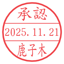 オプションの「電子透かし」をチェックし[生成]すると、見た目には分からないように、UNIXタイムスタンプを識別情報としてPNG形式の日付印に埋め込みます。 日付スタンプメーカーの使い方「部署」「名前」は最大8文字まで入力が可能です。「スタンプの色」を選択し、[生成]ボタン押下で印影画像が更新され、背景を透明に設定したPNG形式とPDF形式の印影画像がリンクからダウンロードできます。 オプションの「電子透かし」は、その性格上日付印ととても相性の良い付加サービスです。 別ページの「タイムスタンプと電子透かし」でも詳しく解説しますが、このオプションを追加することで、日付印が生成された日時に確かにその印が存在していることが証明されます。 ![]() 鹿子木さんの電子印鑑が作れます。社内でのデータ書類閲覧確認用など、認印的な使い方のできる電子印鑑が作れます。 ![]() 古代文字で落款印が作れます。「落款スタンプメーカー」で作品を引き立たせる落款印が作れます。
