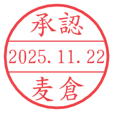 オプションの「電子透かし」をチェックし[生成]すると、見た目には分からないように、UNIXタイムスタンプを識別情報としてPNG形式の日付印に埋め込みます。 日付スタンプメーカーの使い方「部署」「名前」は最大8文字まで入力が可能です。「スタンプの色」を選択し、[生成]ボタン押下で印影画像が更新され、背景を透明に設定したPNG形式とPDF形式の印影画像がリンクからダウンロードできます。 オプションの「電子透かし」は、その性格上日付印ととても相性の良い付加サービスです。 別ページの「タイムスタンプと電子透かし」でも詳しく解説しますが、このオプションを追加することで、日付印が生成された日時に確かにその印が存在していることが証明されます。 ![]() 麦倉さんの電子印鑑が作れます。社内でのデータ書類閲覧確認用など、認印的な使い方のできる電子印鑑が作れます。 ![]() 古代文字で落款印が作れます。「落款スタンプメーカー」で作品を引き立たせる落款印が作れます。