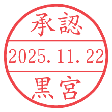オプションの「電子透かし」をチェックし[生成]すると、見た目には分からないように、UNIXタイムスタンプを識別情報としてPNG形式の日付印に埋め込みます。 日付スタンプメーカーの使い方「部署」「名前」は最大8文字まで入力が可能です。「スタンプの色」を選択し、[生成]ボタン押下で印影画像が更新され、背景を透明に設定したPNG形式とPDF形式の印影画像がリンクからダウンロードできます。 オプションの「電子透かし」は、その性格上日付印ととても相性の良い付加サービスです。 別ページの「タイムスタンプと電子透かし」でも詳しく解説しますが、このオプションを追加することで、日付印が生成された日時に確かにその印が存在していることが証明されます。 ![]() 黒宮さんの電子印鑑が作れます。社内でのデータ書類閲覧確認用など、認印的な使い方のできる電子印鑑が作れます。 ![]() 古代文字で落款印が作れます。「落款スタンプメーカー」で作品を引き立たせる落款印が作れます。