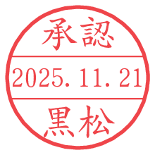 オプションの「電子透かし」をチェックし[生成]すると、見た目には分からないように、UNIXタイムスタンプを識別情報としてPNG形式の日付印に埋め込みます。 日付スタンプメーカーの使い方「部署」「名前」は最大8文字まで入力が可能です。「スタンプの色」を選択し、[生成]ボタン押下で印影画像が更新され、背景を透明に設定したPNG形式とPDF形式の印影画像がリンクからダウンロードできます。 オプションの「電子透かし」は、その性格上日付印ととても相性の良い付加サービスです。 別ページの「タイムスタンプと電子透かし」でも詳しく解説しますが、このオプションを追加することで、日付印が生成された日時に確かにその印が存在していることが証明されます。 ![]() 黒松さんの電子印鑑が作れます。社内でのデータ書類閲覧確認用など、認印的な使い方のできる電子印鑑が作れます。 ![]() 古代文字で落款印が作れます。「落款スタンプメーカー」で作品を引き立たせる落款印が作れます。