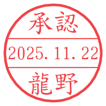 オプションの「電子透かし」をチェックし[生成]すると、見た目には分からないように、UNIXタイムスタンプを識別情報としてPNG形式の日付印に埋め込みます。 日付スタンプメーカーの使い方「部署」「名前」は最大8文字まで入力が可能です。「スタンプの色」を選択し、[生成]ボタン押下で印影画像が更新され、背景を透明に設定したPNG形式とPDF形式の印影画像がリンクからダウンロードできます。 オプションの「電子透かし」は、その性格上日付印ととても相性の良い付加サービスです。 別ページの「タイムスタンプと電子透かし」でも詳しく解説しますが、このオプションを追加することで、日付印が生成された日時に確かにその印が存在していることが証明されます。 ![]() 龍野さんの電子印鑑が作れます。社内でのデータ書類閲覧確認用など、認印的な使い方のできる電子印鑑が作れます。 ![]() 古代文字で落款印が作れます。「落款スタンプメーカー」で作品を引き立たせる落款印が作れます。