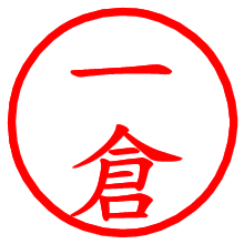 [朱肉の色]を選び、入力窓に“一倉”と入力して[生成]ボタンを押すと、印影が更新され、リンクから電子印鑑(デジタル印影)がダウンロードできます。 電子印鑑「一倉」の作り方文字表示が変なときや、文字バランスが悪いときは[字形切替]のチェックボックスでON/OFFを切り替え[生成]しなおしてください。 生成される画像は通常の印影「一倉.png」と、にじみを表現した少し太めの印影「一倉B.png」の背面透過PNG形式2種と、鮮明なPDF形式の印影「一倉.pdf」の計3種類です。 朱肉の微妙な色の違いを7色で表現しました。デフォルト(左端)は、JISが定めた朱肉の色のマンセル値(7.5R 5/14)をRGB値(217,66,54)に変換したものになっています。 「電子透かし」にチェックを入れて[生成]ボタンを押すと、タイムスタンプを電子透かしとして埋め込んだセキュアな電子印鑑が作れます。詳細は別ページの「タイムスタンプと電子透かし」でご覧ください。 一倉さんの日付印が作れます。「日付スタンプメーカー」は、社内向けの書類に利用されることの多い日付印(データ印)が無料で作れるWebアプリケーションです。中段に日付が入り、上段と下段は、ともに8文字まで文字が入ります。 ![]() 古代文字で落款印が作れます。「落款スタンプメーカー」で作品を引き立たせる落款印が作れます。