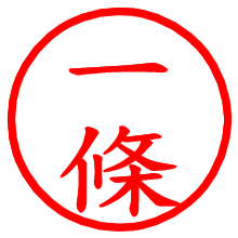 [朱肉の色]を選び、入力窓に“一條”と入力して[生成]ボタンを押すと、印影が更新され、リンクから電子印鑑(デジタル印影)がダウンロードできます。 電子印鑑「一條」の作り方文字表示が変なときや、文字バランスが悪いときは[字形切替]のチェックボックスでON/OFFを切り替え[生成]しなおしてください。 生成される画像は通常の印影「一條.png」と、にじみを表現した少し太めの印影「一條B.png」の背面透過PNG形式2種と、鮮明なPDF形式の印影「一條.pdf」の計3種類です。 朱肉の微妙な色の違いを7色で表現しました。デフォルト(左端)は、JISが定めた朱肉の色のマンセル値(7.5R 5/14)をRGB値(217,66,54)に変換したものになっています。 「電子透かし」にチェックを入れて[生成]ボタンを押すと、タイムスタンプを透かしとして埋め込んだセキュアな電子印鑑が作れます。詳細は別ページの「電子透かしとタイムスタンプ」でご覧ください。 一條さんの日付印が作れます。「日付スタンプメーカー」は、社内向けの書類に利用されることの多い日付印(データ印)が無料で作れるWebアプリケーションです。中段に日付が入り、上段と下段は、ともに8文字まで文字が入ります。 ![]() 古代文字で落款印が作れます。「落款スタンプメーカー」で作品を引き立たせる落款印が作れます。
