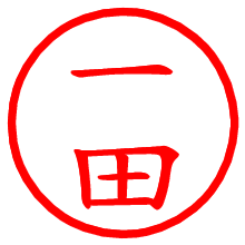 [朱肉の色]を選び、入力窓に“一田”と入力して[生成]ボタンを押すと、印影が更新され、リンクから電子印鑑(デジタル印影)がダウンロードできます。 電子印鑑「一田」の作り方文字表示が変なときや、文字バランスが悪いときは[字形切替]のチェックボックスでON/OFFを切り替え[生成]しなおしてください。 生成される画像は通常の印影「一田.png」と、にじみを表現した少し太めの印影「一田B.png」の背面透過PNG形式2種と、鮮明なPDF形式の印影「一田.pdf」の計3種類です。 朱肉の微妙な色の違いを7色で表現しました。デフォルト(左端)は、JISが定めた朱肉の色のマンセル値(7.5R 5/14)をRGB値(217,66,54)に変換したものになっています。 「電子透かし」にチェックを入れて[生成]ボタンを押すと、タイムスタンプを電子透かしとして埋め込んだセキュアな電子印鑑が作れます。詳細は別ページの「タイムスタンプと電子透かし」でご覧ください。 一田さんの日付印が作れます。「日付スタンプメーカー」は、社内向けの書類に利用されることの多い日付印(データ印)が無料で作れるWebアプリケーションです。中段に日付が入り、上段と下段は、ともに8文字まで文字が入ります。 ![]() 古代文字で落款印が作れます。「落款スタンプメーカー」で作品を引き立たせる落款印が作れます。