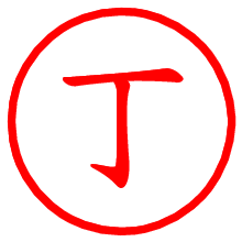 [朱肉の色]を選び、入力窓に“丁”と入力して[生成]ボタンを押すと、印影が更新され、リンクから電子印鑑(デジタル印影)がダウンロードできます。 電子印鑑「丁」の作り方文字表示が変なときや、文字バランスが悪いときは[字形切替]のチェックボックスでON/OFFを切り替え[生成]しなおしてください。 生成される画像は通常の印影「丁.png」と、にじみを表現した少し太めの印影「丁B.png」の背面透過PNG形式2種と、鮮明なPDF形式の印影「丁.pdf」の計3種類です。 朱肉の微妙な色の違いを7色で表現しました。デフォルト(左端)は、JISが定めた朱肉の色のマンセル値(7.5R 5/14)をRGB値(217,66,54)に変換したものになっています。 「電子透かし」にチェックを入れて[生成]ボタンを押すと、タイムスタンプを電子透かしとして埋め込んだセキュアな電子印鑑が作れます。詳細は別ページの「タイムスタンプと電子透かし」でご覧ください。 丁さんの日付印が作れます。「日付スタンプメーカー」は、社内向けの書類に利用されることの多い日付印(データ印)が無料で作れるWebアプリケーションです。中段に日付が入り、上段と下段は、ともに8文字まで文字が入ります。 ![]() 古代文字で落款印が作れます。「落款スタンプメーカー」で作品を引き立たせる落款印が作れます。