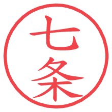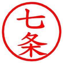 [朱肉の色]を選び、入力窓に“七条”と入力して[生成]ボタンを押すと、印影が更新され、リンクから電子印鑑(デジタル印影)がダウンロードできます。 電子印鑑「七条」の作り方文字表示が変なときや、文字バランスが悪いときは[字形切替]のチェックボックスでON/OFFを切り替え[生成]しなおしてください。 生成される画像は通常の印影「七条.png」と、にじみを表現した少し太めの印影「七条B.png」の背面透過PNG形式2種と、鮮明なPDF形式の印影「七条.pdf」の計3種類です。 朱肉の微妙な色の違いを7色で表現しました。デフォルト(左端)は、JISが定めた朱肉の色のマンセル値(7.5R 5/14)をRGB値(217,66,54)に変換したものになっています。 「電子透かし」にチェックを入れて[生成]ボタンを押すと、タイムスタンプを電子透かしとして埋め込んだセキュアな電子印鑑が作れます。詳細は別ページの「タイムスタンプと電子透かし」でご覧ください。 七条さんの日付印が作れます。「日付スタンプメーカー」は、社内向けの書類に利用されることの多い日付印(データ印)が無料で作れるWebアプリケーションです。中段に日付が入り、上段と下段は、ともに8文字まで文字が入ります。 ![]() 古代文字で落款印が作れます。「落款スタンプメーカー」で作品を引き立たせる落款印が作れます。