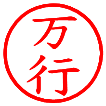 [朱肉の色]を選び、入力窓に“万行”と入力して[生成]ボタンを押すと、印影が更新され、リンクから電子印鑑(デジタル印影)がダウンロードできます。 電子印鑑「万行」の作り方文字表示が変なときや、文字バランスが悪いときは[字形切替]のチェックボックスでON/OFFを切り替え[生成]しなおしてください。 生成される画像は通常の印影「万行.png」と、にじみを表現した少し太めの印影「万行B.png」の背面透過PNG形式2種と、鮮明なPDF形式の印影「万行.pdf」の計3種類です。 朱肉の微妙な色の違いを7色で表現しました。デフォルト(左端)は、JISが定めた朱肉の色のマンセル値(7.5R 5/14)をRGB値(217,66,54)に変換したものになっています。 「電子透かし」にチェックを入れて[生成]ボタンを押すと、タイムスタンプを電子透かしとして埋め込んだセキュアな電子印鑑が作れます。詳細は別ページの「タイムスタンプと電子透かし」でご覧ください。 万行さんの日付印が作れます。「日付スタンプメーカー」は、社内向けの書類に利用されることの多い日付印(データ印)が無料で作れるWebアプリケーションです。中段に日付が入り、上段と下段は、ともに8文字まで文字が入ります。 ![]() 古代文字で落款印が作れます。「落款スタンプメーカー」で作品を引き立たせる落款印が作れます。