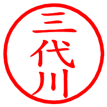 [朱肉の色]を選び、入力窓に“三代川”と入力して[生成]ボタンを押すと、印影が更新され、リンクから電子印鑑(デジタル印影)がダウンロードできます。 電子印鑑「三代川」の作り方文字表示が変なときや、文字バランスが悪いときは[字形切替]のチェックボックスでON/OFFを切り替え[生成]しなおしてください。 生成される画像は通常の印影「三代川.png」と、にじみを表現した少し太めの印影「三代川B.png」の背面透過PNG形式2種と、鮮明なPDF形式の印影「三代川.pdf」の計3種類です。 朱肉の微妙な色の違いを7色で表現しました。デフォルト(左端)は、JISが定めた朱肉の色のマンセル値(7.5R 5/14)をRGB値(217,66,54)に変換したものになっています。 「電子透かし」にチェックを入れて[生成]ボタンを押すと、タイムスタンプを電子透かしとして埋め込んだセキュアな電子印鑑が作れます。詳細は別ページの「タイムスタンプと電子透かし」でご覧ください。 三代川さんの日付印が作れます。「日付スタンプメーカー」は、社内向けの書類に利用されることの多い日付印(データ印)が無料で作れるWebアプリケーションです。中段に日付が入り、上段と下段は、ともに8文字まで文字が入ります。 ![]() 古代文字で落款印が作れます。「落款スタンプメーカー」で作品を引き立たせる落款印が作れます。