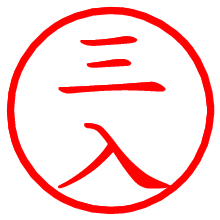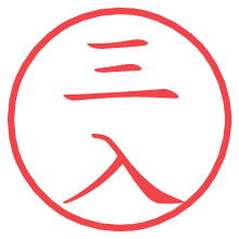 [朱肉の色]を選び、入力窓に“三入”と入力して[生成]ボタンを押すと、印影が更新され、リンクから電子印鑑(デジタル印影)がダウンロードできます。 電子印鑑「三入」の作り方文字表示が変なときや、文字バランスが悪いときは[字形切替]のチェックボックスでON/OFFを切り替え[生成]しなおしてください。 生成される画像は通常の印影「三入.png」と、にじみを表現した少し太めの印影「三入B.png」の背面透過PNG形式2種と、鮮明なPDF形式の印影「三入.pdf」の計3種類です。 朱肉の微妙な色の違いを7色で表現しました。デフォルト(左端)は、JISが定めた朱肉の色のマンセル値(7.5R 5/14)をRGB値(217,66,54)に変換したものになっています。 「電子透かし」にチェックを入れて[生成]ボタンを押すと、タイムスタンプを電子透かしとして埋め込んだセキュアな電子印鑑が作れます。詳細は別ページの「タイムスタンプと電子透かし」でご覧ください。 三入さんの日付印が作れます。「日付スタンプメーカー」は、社内向けの書類に利用されることの多い日付印(データ印)が無料で作れるWebアプリケーションです。中段に日付が入り、上段と下段は、ともに8文字まで文字が入ります。 ![]() 古代文字で落款印が作れます。「落款スタンプメーカー」で作品を引き立たせる落款印が作れます。