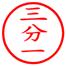 [朱肉の色]を選び、入力窓に“三分一”と入力して[生成]ボタンを押すと、印影が更新され、リンクから電子印鑑(デジタル印影)がダウンロードできます。 電子印鑑「三分一」の作り方文字表示が変なときや、文字バランスが悪いときは[字形切替]のチェックボックスでON/OFFを切り替え[生成]しなおしてください。 生成される画像は通常の印影「三分一.png」と、にじみを表現した少し太めの印影「三分一B.png」の背面透過PNG形式2種と、鮮明なPDF形式の印影「三分一.pdf」の計3種類です。 朱肉の微妙な色の違いを7色で表現しました。デフォルト(左端)は、JISが定めた朱肉の色のマンセル値(7.5R 5/14)をRGB値(217,66,54)に変換したものになっています。 「電子透かし」にチェックを入れて[生成]ボタンを押すと、タイムスタンプを電子透かしとして埋め込んだセキュアな電子印鑑が作れます。詳細は別ページの「タイムスタンプと電子透かし」でご覧ください。 三分一さんの日付印が作れます。「日付スタンプメーカー」は、社内向けの書類に利用されることの多い日付印(データ印)が無料で作れるWebアプリケーションです。中段に日付が入り、上段と下段は、ともに8文字まで文字が入ります。 ![]() 古代文字で落款印が作れます。「落款スタンプメーカー」で作品を引き立たせる落款印が作れます。