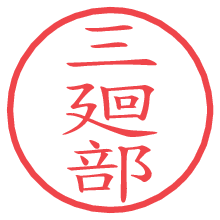 [朱肉の色]を選び、入力窓に“三廻部”と入力して[生成]ボタンを押すと、印影が更新され、リンクから電子印鑑(デジタル印影)がダウンロードできます。 電子印鑑「三廻部」の作り方文字表示が変なときや、文字バランスが悪いときは[字形切替]のチェックボックスでON/OFFを切り替え[生成]しなおしてください。 生成される画像は通常の印影「三廻部.png」と、にじみを表現した少し太めの印影「三廻部B.png」の背面透過PNG形式2種と、鮮明なPDF形式の印影「三廻部.pdf」の計3種類です。 朱肉の微妙な色の違いを7色で表現しました。デフォルト(左端)は、JISが定めた朱肉の色のマンセル値(7.5R 5/14)をRGB値(217,66,54)に変換したものになっています。 「電子透かし」にチェックを入れて[生成]ボタンを押すと、タイムスタンプを電子透かしとして埋め込んだセキュアな電子印鑑が作れます。詳細は別ページの「タイムスタンプと電子透かし」でご覧ください。 三廻部さんの日付印が作れます。「日付スタンプメーカー」は、社内向けの書類に利用されることの多い日付印(データ印)が無料で作れるWebアプリケーションです。中段に日付が入り、上段と下段は、ともに8文字まで文字が入ります。 ![]() 古代文字で落款印が作れます。「落款スタンプメーカー」で作品を引き立たせる落款印が作れます。
