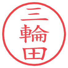 [朱肉の色]を選び、入力窓に“三輪田”と入力して[生成]ボタンを押すと、印影が更新され、リンクから電子印鑑(デジタル印影)がダウンロードできます。 電子印鑑「三輪田」の作り方文字表示が変なときや、文字バランスが悪いときは[字形切替]のチェックボックスでON/OFFを切り替え[生成]しなおしてください。 生成される画像は通常の印影「三輪田.png」と、にじみを表現した少し太めの印影「三輪田B.png」の背面透過PNG形式2種と、鮮明なPDF形式の印影「三輪田.pdf」の計3種類です。 朱肉の微妙な色の違いを7色で表現しました。デフォルト(左端)は、JISが定めた朱肉の色のマンセル値(7.5R 5/14)をRGB値(217,66,54)に変換したものになっています。 「電子透かし」にチェックを入れて[生成]ボタンを押すと、タイムスタンプを電子透かしとして埋め込んだセキュアな電子印鑑が作れます。詳細は別ページの「タイムスタンプと電子透かし」でご覧ください。 三輪田さんの日付印が作れます。「日付スタンプメーカー」は、社内向けの書類に利用されることの多い日付印(データ印)が無料で作れるWebアプリケーションです。中段に日付が入り、上段と下段は、ともに8文字まで文字が入ります。 ![]() 古代文字で落款印が作れます。「落款スタンプメーカー」で作品を引き立たせる落款印が作れます。