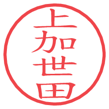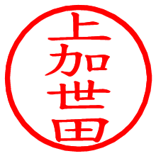 [朱肉の色]を選び、入力窓に“上加世田”と入力して[生成]ボタンを押すと、印影が更新され、リンクから電子印鑑(デジタル印影)がダウンロードできます。 電子印鑑「上加世田」の作り方文字表示が変なときや、文字バランスが悪いときは[字形切替]のチェックボックスでON/OFFを切り替え[生成]しなおしてください。 生成される画像は通常の印影「上加世田.png」と、にじみを表現した少し太めの印影「上加世田B.png」の背面透過PNG形式2種と、鮮明なPDF形式の印影「上加世田.pdf」の計3種類です。 朱肉の微妙な色の違いを7色で表現しました。デフォルト(左端)は、JISが定めた朱肉の色のマンセル値(7.5R 5/14)をRGB値(217,66,54)に変換したものになっています。 「電子透かし」にチェックを入れて[生成]ボタンを押すと、タイムスタンプを電子透かしとして埋め込んだセキュアな電子印鑑が作れます。詳細は別ページの「タイムスタンプと電子透かし」でご覧ください。 上加世田さんの日付印が作れます。「日付スタンプメーカー」は、社内向けの書類に利用されることの多い日付印(データ印)が無料で作れるWebアプリケーションです。中段に日付が入り、上段と下段は、ともに8文字まで文字が入ります。 ![]() 古代文字で落款印が作れます。「落款スタンプメーカー」で作品を引き立たせる落款印が作れます。