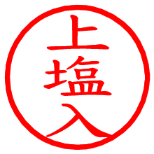[朱肉の色]を選び、入力窓に“上塩入”と入力して[生成]ボタンを押すと、印影が更新され、リンクから電子印鑑(デジタル印影)がダウンロードできます。 電子印鑑「上塩入」の作り方文字表示が変なときや、文字バランスが悪いときは[字形切替]のチェックボックスでON/OFFを切り替え[生成]しなおしてください。 生成される画像は通常の印影「上塩入.png」と、にじみを表現した少し太めの印影「上塩入B.png」の背面透過PNG形式2種と、鮮明なPDF形式の印影「上塩入.pdf」の計3種類です。 朱肉の微妙な色の違いを7色で表現しました。デフォルト(左端)は、JISが定めた朱肉の色のマンセル値(7.5R 5/14)をRGB値(217,66,54)に変換したものになっています。 「電子透かし」にチェックを入れて[生成]ボタンを押すと、タイムスタンプを透かしとして埋め込んだセキュアな電子印鑑が作れます。詳細は別ページの「電子透かしとタイムスタンプ」でご覧ください。 上塩入さんの日付印が作れます。「日付スタンプメーカー」は、社内向けの書類に利用されることの多い日付印(データ印)が無料で作れるWebアプリケーションです。中段に日付が入り、上段と下段は、ともに8文字まで文字が入ります。 ![]() 古代文字で落款印が作れます。「落款スタンプメーカー」で作品を引き立たせる落款印が作れます。