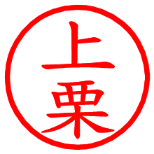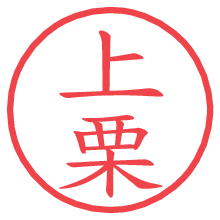 [朱肉の色]を選び、入力窓に“上栗”と入力して[生成]ボタンを押すと、印影が更新され、リンクから電子印鑑(デジタル印影)がダウンロードできます。 電子印鑑「上栗」の作り方文字表示が変なときや、文字バランスが悪いときは[字形切替]のチェックボックスでON/OFFを切り替え[生成]しなおしてください。 生成される画像は通常の印影「上栗.png」と、にじみを表現した少し太めの印影「上栗B.png」の背面透過PNG形式2種と、鮮明なPDF形式の印影「上栗.pdf」の計3種類です。 朱肉の微妙な色の違いを7色で表現しました。デフォルト(左端)は、JISが定めた朱肉の色のマンセル値(7.5R 5/14)をRGB値(217,66,54)に変換したものになっています。 「電子透かし」にチェックを入れて[生成]ボタンを押すと、タイムスタンプを電子透かしとして埋め込んだセキュアな電子印鑑が作れます。詳細は別ページの「タイムスタンプと電子透かし」でご覧ください。 上栗さんの日付印が作れます。「日付スタンプメーカー」は、社内向けの書類に利用されることの多い日付印(データ印)が無料で作れるWebアプリケーションです。中段に日付が入り、上段と下段は、ともに8文字まで文字が入ります。 ![]() 古代文字で落款印が作れます。「落款スタンプメーカー」で作品を引き立たせる落款印が作れます。