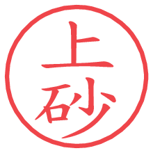 [朱肉の色]を選び、入力窓に“上砂”と入力して[生成]ボタンを押すと、印影が更新され、リンクから電子印鑑(デジタル印影)がダウンロードできます。 電子印鑑「上砂」の作り方文字表示が変なときや、文字バランスが悪いときは[字形切替]のチェックボックスでON/OFFを切り替え[生成]しなおしてください。 生成される画像は通常の印影「上砂.png」と、にじみを表現した少し太めの印影「上砂B.png」の背面透過PNG形式2種と、鮮明なPDF形式の印影「上砂.pdf」の計3種類です。 朱肉の微妙な色の違いを7色で表現しました。デフォルト(左端)は、JISが定めた朱肉の色のマンセル値(7.5R 5/14)をRGB値(217,66,54)に変換したものになっています。 「電子透かし」にチェックを入れて[生成]ボタンを押すと、タイムスタンプを電子透かしとして埋め込んだセキュアな電子印鑑が作れます。詳細は別ページの「タイムスタンプと電子透かし」でご覧ください。 上砂さんの日付印が作れます。「日付スタンプメーカー」は、社内向けの書類に利用されることの多い日付印(データ印)が無料で作れるWebアプリケーションです。中段に日付が入り、上段と下段は、ともに8文字まで文字が入ります。 ![]() 古代文字で落款印が作れます。「落款スタンプメーカー」で作品を引き立たせる落款印が作れます。