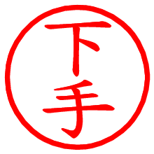 [朱肉の色]を選び、入力窓に“下手”と入力して[生成]ボタンを押すと、印影が更新され、リンクから電子印鑑(デジタル印影)がダウンロードできます。 電子印鑑「下手」の作り方文字表示が変なときや、文字バランスが悪いときは[字形切替]のチェックボックスでON/OFFを切り替え[生成]しなおしてください。 生成される画像は通常の印影「下手.png」と、にじみを表現した少し太めの印影「下手B.png」の背面透過PNG形式2種と、鮮明なPDF形式の印影「下手.pdf」の計3種類です。 朱肉の微妙な色の違いを7色で表現しました。デフォルト(左端)は、JISが定めた朱肉の色のマンセル値(7.5R 5/14)をRGB値(217,66,54)に変換したものになっています。 「電子透かし」にチェックを入れて[生成]ボタンを押すと、タイムスタンプを電子透かしとして埋め込んだセキュアな電子印鑑が作れます。詳細は別ページの「タイムスタンプと電子透かし」でご覧ください。 下手さんの日付印が作れます。「日付スタンプメーカー」は、社内向けの書類に利用されることの多い日付印(データ印)が無料で作れるWebアプリケーションです。中段に日付が入り、上段と下段は、ともに8文字まで文字が入ります。 ![]() 古代文字で落款印が作れます。「落款スタンプメーカー」で作品を引き立たせる落款印が作れます。