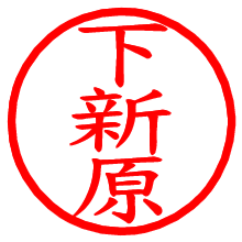 [朱肉の色]を選び、入力窓に“下新原”と入力して[生成]ボタンを押すと、印影が更新され、リンクから電子印鑑(デジタル印影)がダウンロードできます。 電子印鑑「下新原」の作り方文字表示が変なときや、文字バランスが悪いときは[字形切替]のチェックボックスでON/OFFを切り替え[生成]しなおしてください。 生成される画像は通常の印影「下新原.png」と、にじみを表現した少し太めの印影「下新原B.png」の背面透過PNG形式2種と、鮮明なPDF形式の印影「下新原.pdf」の計3種類です。 朱肉の微妙な色の違いを7色で表現しました。デフォルト(左端)は、JISが定めた朱肉の色のマンセル値(7.5R 5/14)をRGB値(217,66,54)に変換したものになっています。 「電子透かし」にチェックを入れて[生成]ボタンを押すと、タイムスタンプを電子透かしとして埋め込んだセキュアな電子印鑑が作れます。詳細は別ページの「タイムスタンプと電子透かし」でご覧ください。 下新原さんの日付印が作れます。「日付スタンプメーカー」は、社内向けの書類に利用されることの多い日付印(データ印)が無料で作れるWebアプリケーションです。中段に日付が入り、上段と下段は、ともに8文字まで文字が入ります。 ![]() 古代文字で落款印が作れます。「落款スタンプメーカー」で作品を引き立たせる落款印が作れます。