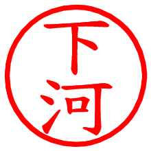 [朱肉の色]を選び、入力窓に“下河”と入力して[生成]ボタンを押すと、印影が更新され、リンクから電子印鑑(デジタル印影)がダウンロードできます。 電子印鑑「下河」の作り方文字表示が変なときや、文字バランスが悪いときは[字形切替]のチェックボックスでON/OFFを切り替え[生成]しなおしてください。 生成される画像は通常の印影「下河.png」と、にじみを表現した少し太めの印影「下河B.png」の背面透過PNG形式2種と、鮮明なPDF形式の印影「下河.pdf」の計3種類です。 朱肉の微妙な色の違いを7色で表現しました。デフォルト(左端)は、JISが定めた朱肉の色のマンセル値(7.5R 5/14)をRGB値(217,66,54)に変換したものになっています。 「電子透かし」にチェックを入れて[生成]ボタンを押すと、タイムスタンプを電子透かしとして埋め込んだセキュアな電子印鑑が作れます。詳細は別ページの「タイムスタンプと電子透かし」でご覧ください。 下河さんの日付印が作れます。「日付スタンプメーカー」は、社内向けの書類に利用されることの多い日付印(データ印)が無料で作れるWebアプリケーションです。中段に日付が入り、上段と下段は、ともに8文字まで文字が入ります。 ![]() 古代文字で落款印が作れます。「落款スタンプメーカー」で作品を引き立たせる落款印が作れます。