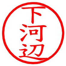[朱肉の色]を選び、入力窓に“下河辺”と入力して[生成]ボタンを押すと、印影が更新され、リンクから電子印鑑(デジタル印影)がダウンロードできます。 電子印鑑「下河辺」の作り方文字表示が変なときや、文字バランスが悪いときは[字形切替]のチェックボックスでON/OFFを切り替え[生成]しなおしてください。 生成される画像は通常の印影「下河辺.png」と、にじみを表現した少し太めの印影「下河辺B.png」の背面透過PNG形式2種と、鮮明なPDF形式の印影「下河辺.pdf」の計3種類です。 朱肉の微妙な色の違いを7色で表現しました。デフォルト(左端)は、JISが定めた朱肉の色のマンセル値(7.5R 5/14)をRGB値(217,66,54)に変換したものになっています。 「電子透かし」にチェックを入れて[生成]ボタンを押すと、タイムスタンプを電子透かしとして埋め込んだセキュアな電子印鑑が作れます。詳細は別ページの「タイムスタンプと電子透かし」でご覧ください。 下河辺さんの日付印が作れます。「日付スタンプメーカー」は、社内向けの書類に利用されることの多い日付印(データ印)が無料で作れるWebアプリケーションです。中段に日付が入り、上段と下段は、ともに8文字まで文字が入ります。 ![]() 古代文字で落款印が作れます。「落款スタンプメーカー」で作品を引き立たせる落款印が作れます。