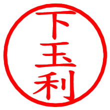 [朱肉の色]を選び、入力窓に“下玉利”と入力して[生成]ボタンを押すと、印影が更新され、リンクから電子印鑑(デジタル印影)がダウンロードできます。 電子印鑑「下玉利」の作り方文字表示が変なときや、文字バランスが悪いときは[字形切替]のチェックボックスでON/OFFを切り替え[生成]しなおしてください。 生成される画像は通常の印影「下玉利.png」と、にじみを表現した少し太めの印影「下玉利B.png」の背面透過PNG形式2種と、鮮明なPDF形式の印影「下玉利.pdf」の計3種類です。 朱肉の微妙な色の違いを7色で表現しました。デフォルト(左端)は、JISが定めた朱肉の色のマンセル値(7.5R 5/14)をRGB値(217,66,54)に変換したものになっています。 「電子透かし」にチェックを入れて[生成]ボタンを押すと、タイムスタンプを電子透かしとして埋め込んだセキュアな電子印鑑が作れます。詳細は別ページの「タイムスタンプと電子透かし」でご覧ください。 下玉利さんの日付印が作れます。「日付スタンプメーカー」は、社内向けの書類に利用されることの多い日付印(データ印)が無料で作れるWebアプリケーションです。中段に日付が入り、上段と下段は、ともに8文字まで文字が入ります。 ![]() 古代文字で落款印が作れます。「落款スタンプメーカー」で作品を引き立たせる落款印が作れます。
